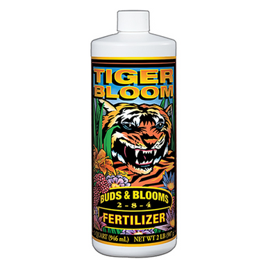 FoxFarm Tiger Bloom® is an ultra potent, fast acting, high phosphorus fertilizer that also contains a good supply of nitrogen for growth and vigor. It is formulated with a low pH to maintain stability in storage and keep micronutrients available. Tiger Bloom® can be used for both hydroponic and soil applications. When used as directed Tiger Bloom® encourages abundant fruit, flower, and multiple bud development. Use Tiger Bloom® at the first signs of flowering through harvest.