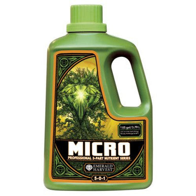 Give your crops what they need when they need it most with Emerald Harvest Grow, Micro, Bloom 3-part base nutrient series. Grow, Micro, Bloom supplies plants with precise nutrient formulations that deliver the right amounts of nitrogen, phosphorus and potassium throughout the crop life cycle. In addition to regulating the amounts of N, P and K so that your high-yield plants flourish, Grow, Micro, Bloom provides a rich mix of trace elements such as magnesium, cobalt and molybdenum as well as many chelated micronutrients such as copper, manganese, zinc and iron.
